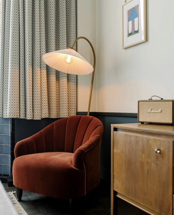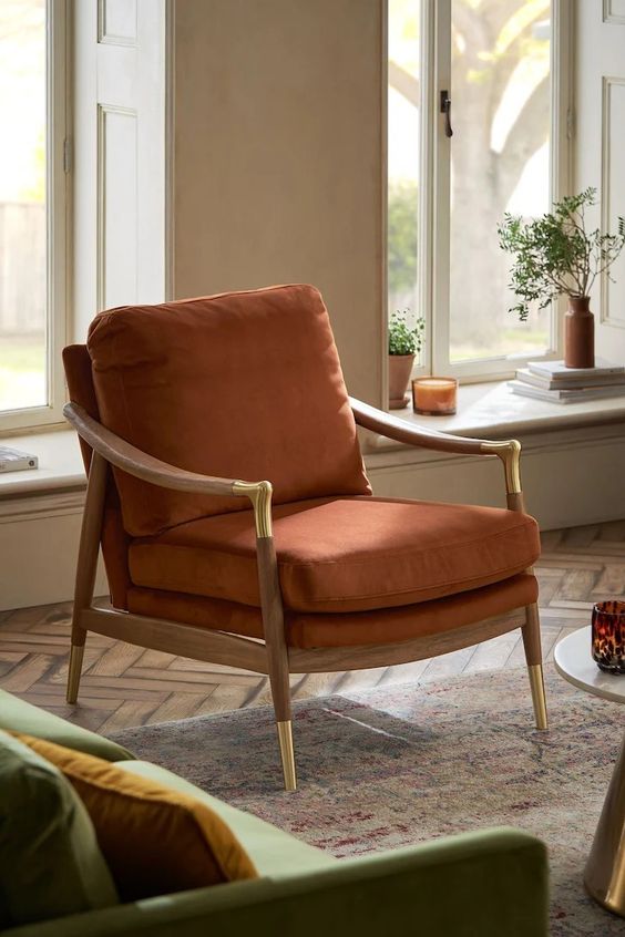 Mid-century modern design gets a fresh update with this brick-colored chair. Its unique shape and elegant legs are a throwback to an iconic era, while the color gives it a modern-day twist. It’s a versatile piece that can be dressed up or down, fitting effortlessly into various decors.