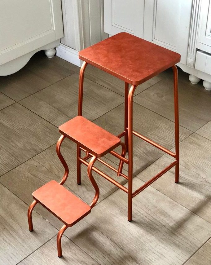 Perfect for the dynamic pantry, this multi-level orange stool is both a chair and a step ladder. Ideal for reaching those high shelves, it’s a practical addition to any pantry. The vibrant orange adds warmth and vitality to the room, making it one of the most functional pantry chair bar stools of the year.