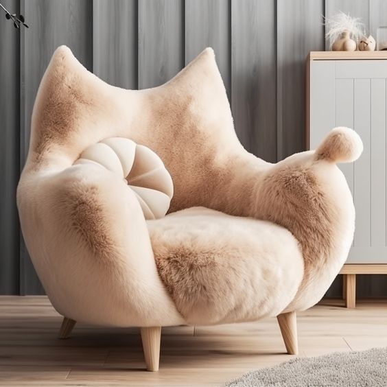 Surrender to the embrace of the plush, sculptural chair that resembles a comforting cocoon. With its undulating form and soft, furry texture, this chair is not just a seat but a retreat from the world. Its wooden legs anchor it in nature, while the design speaks to the minimalist who appreciates a comfy statement piece. It’s a perfect example of living room chairs modern design meeting the pinnacle of comfort.