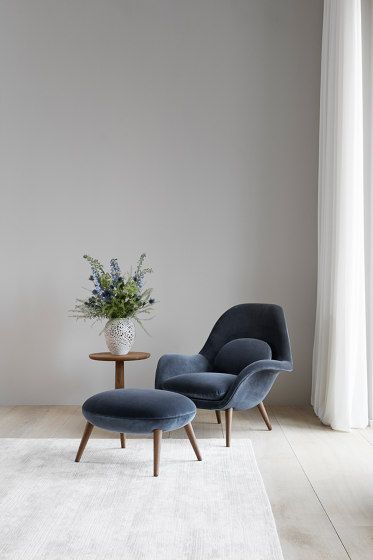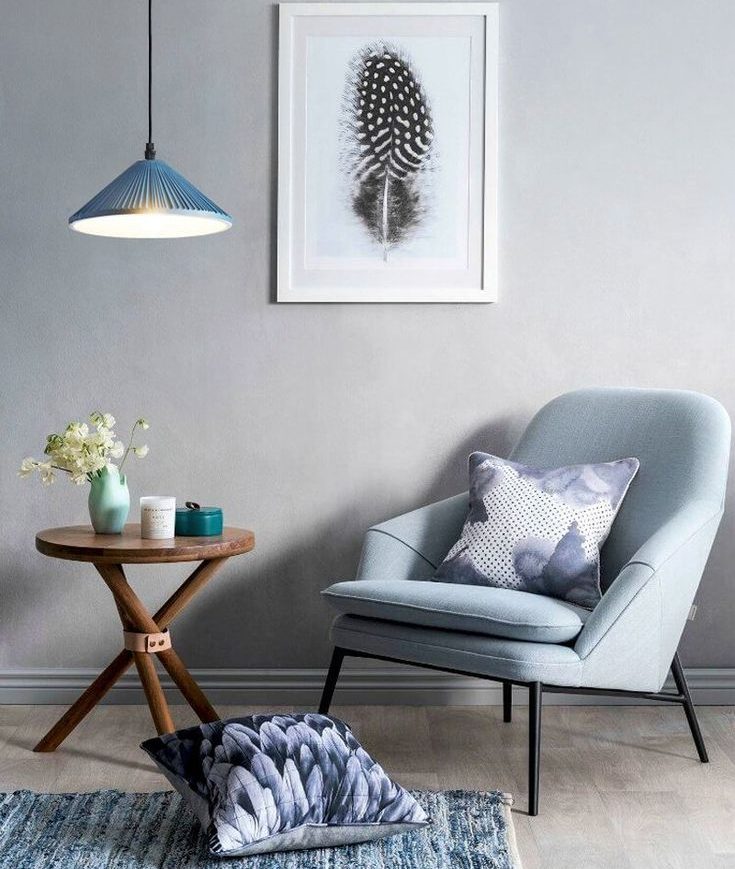 Blue, the color of serenity, is beautifully embodied in these two chairs that exude calm and comfort. Paired with a simple side table, this set-up is ideal for creating a tranquil corner in your living room. The smooth lines and soft fabric reinforce the living room chairs comfy and modern concept.