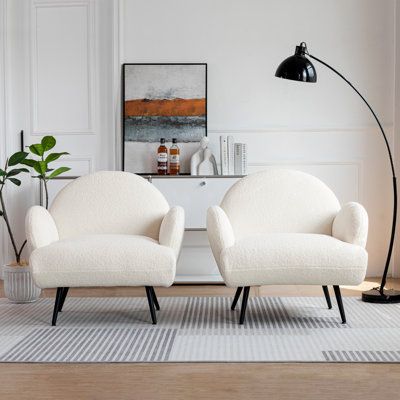 Embracing the farmhouse trend with a modern twist, these creamy curved chairs with black legs offer both comfort and country charm. The soft fabric and the round shape provide a welcoming spot to curl up, ideal for a cozy reading nook or as living room chairs in front of window to enjoy the view.