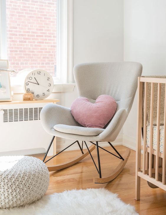 In a world where less is more, a modern, simple chair with clean lines offers a peaceful retreat. The neutral tones provide a versatile canvas for bold accents and allow for an ever-evolving nursery style that grows with your child.