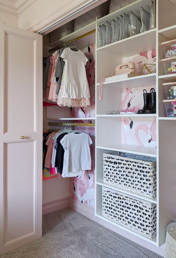 Closet organization ideas kids should be fun and functional. Use lower hanging rods and colorful bins to encourage little ones to keep their space tidy.