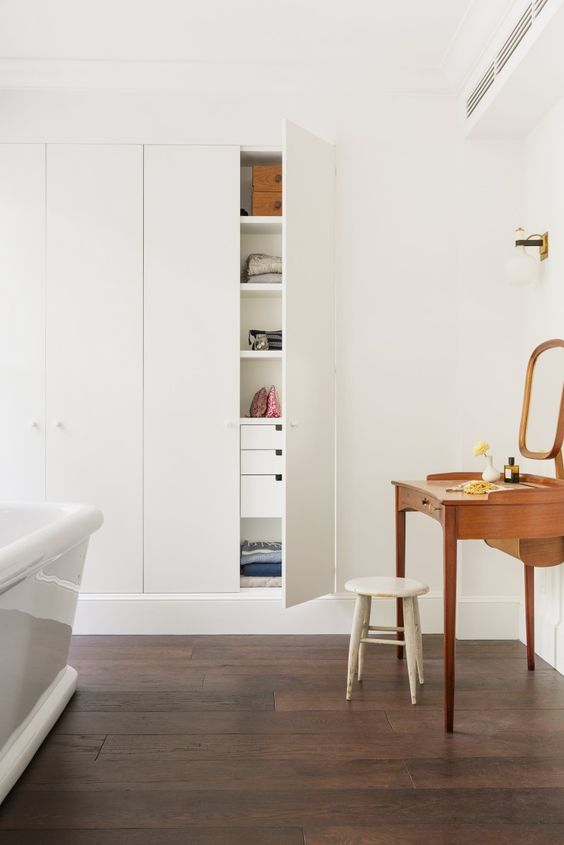Incorporate closets into your living room or office space. Hidden or built-in closets can store away items, keeping your space neat and stylish.
