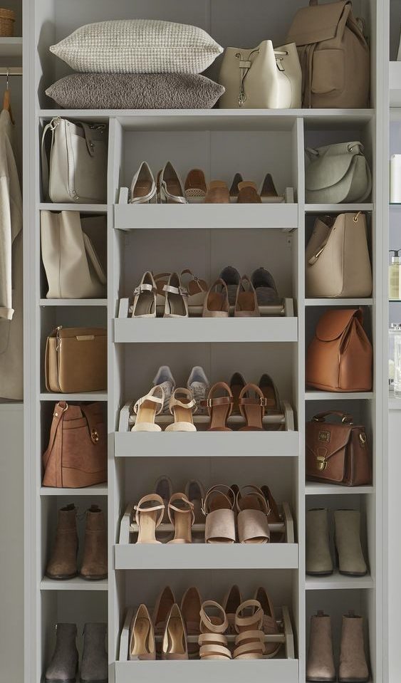 For closet organization ideas shoes, think about angled shelves or a custom shoe rack. This not only showcases your collection but also keeps shoes in good condition.