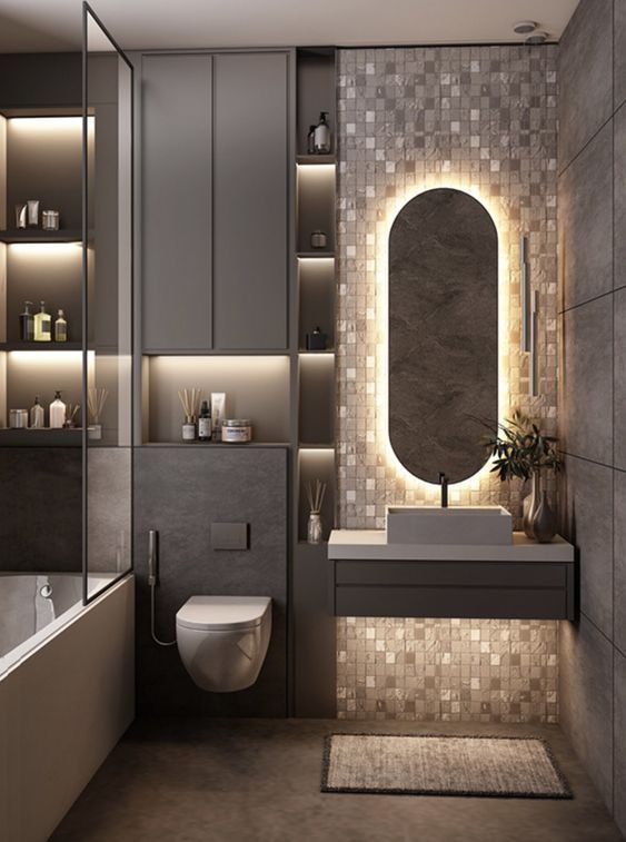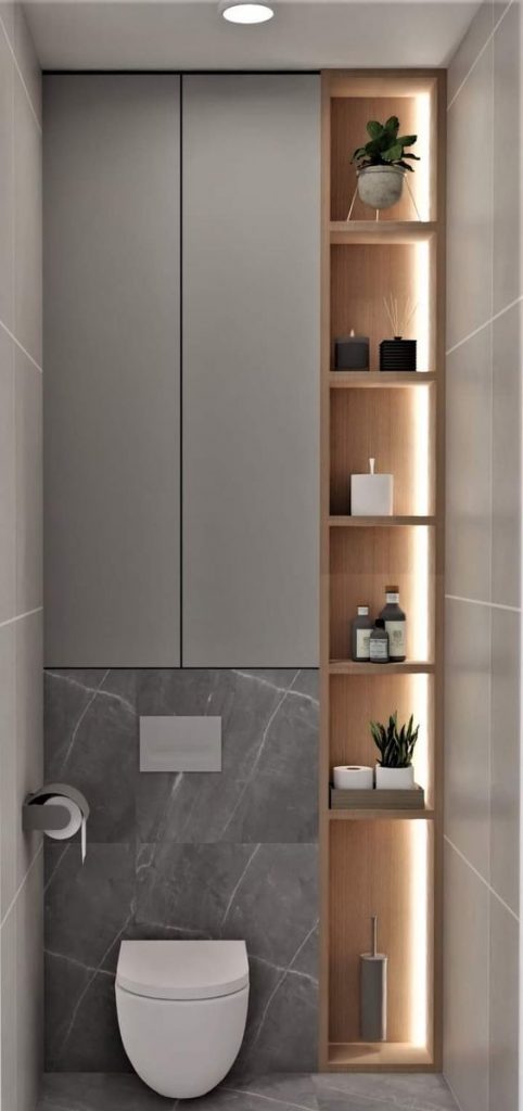 Storage is crucial in a small bathroom. Think floating shelves, hidden cabinets, and multi-purpose furniture. It’s all about modern space saving techniques.