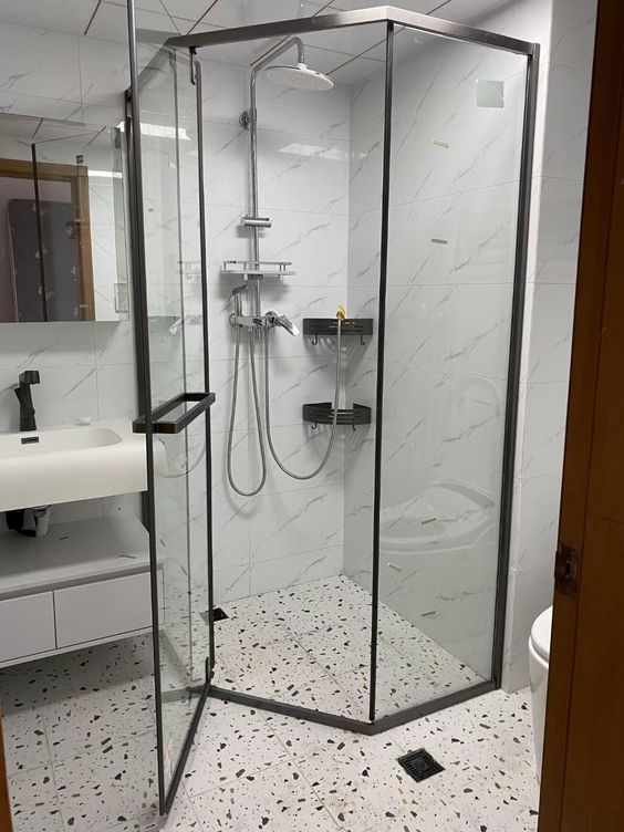 Glass enclosures are ideal for small bathrooms. They create an illusion of space and showcase your beautiful tiles and fixtures.