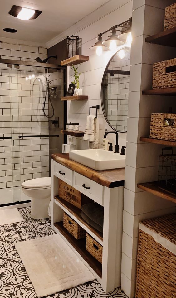 The farmhouse style, with its warm woods and soft colors, is a beautiful way to add coziness to a small bathroom. It’s a blend of rustic charm and modern simplicity.