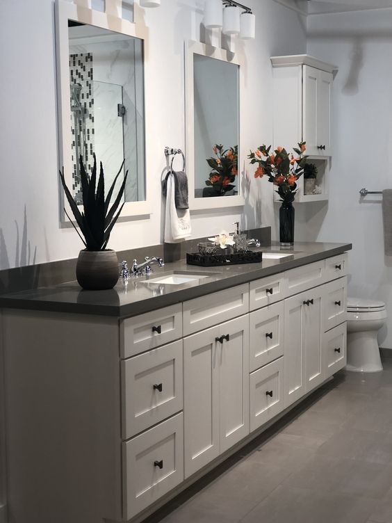 Borrowing elements from the kitchen, like high-quality countertops and cabinetry, can elevate the functionality and style of your bathroom.