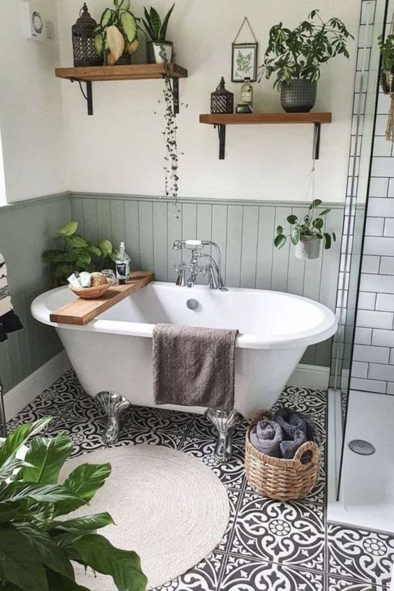 For a more eclectic approach, the Boho style offers a playful mix of patterns, textures, and colors, bringing a global and artistic flair to your bathroom.
