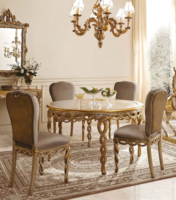 Wooden dining chairs have a timeless appeal, and when crafted with an eye for detail, they become pieces of art. This image showcases luxury dining chairs wooden with intricate carvings and a glossy finish that exudes elegance. The craftsmanship speaks of an Italian influence, bringing a piece of heritage and history to the dining table.