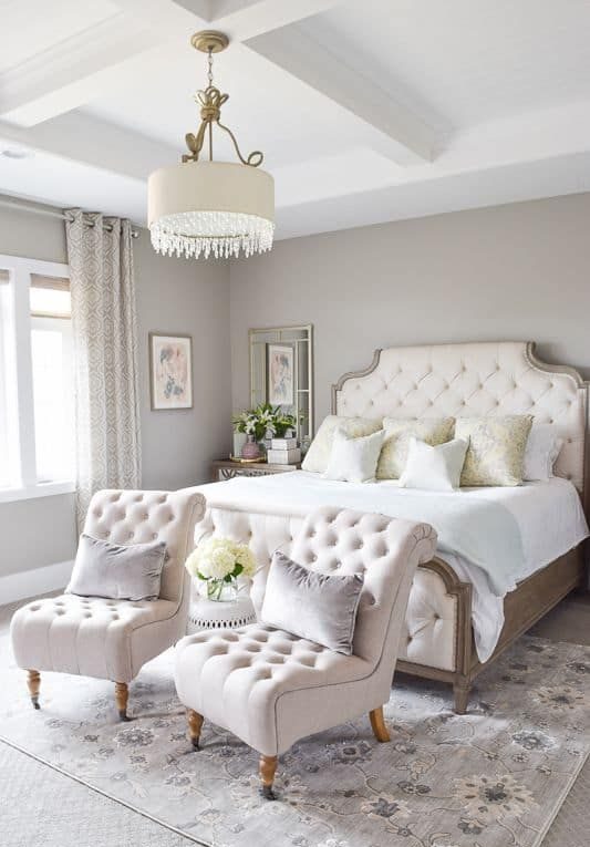 Delve into an elegant bedroom design that epitomizes room inspo clean with plush upholstery and a soothing color scheme, perfect for a minimalist yet luxurious feel.
