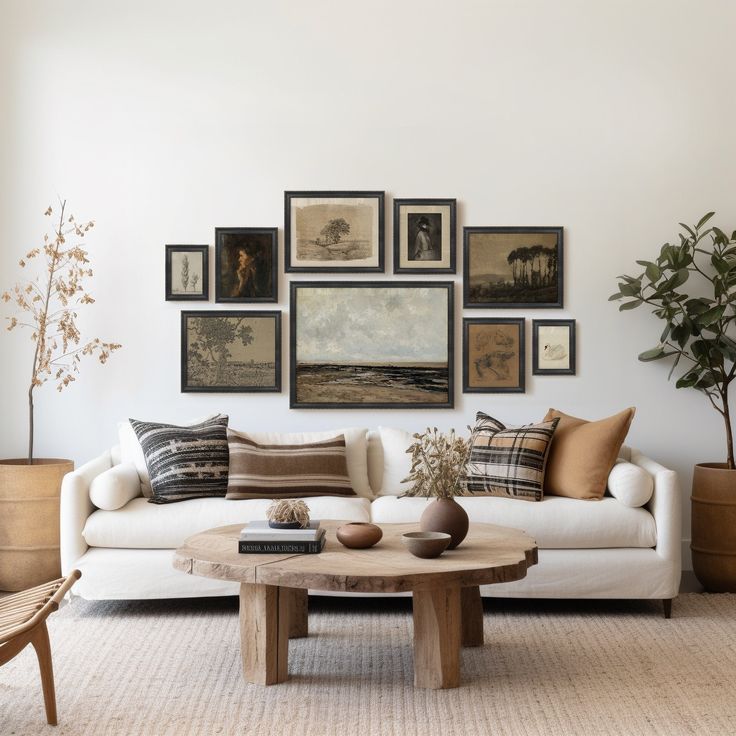 Instructions on curating a gallery wall that reflects personal style and adds character to any living room, showcasing a modern approach.